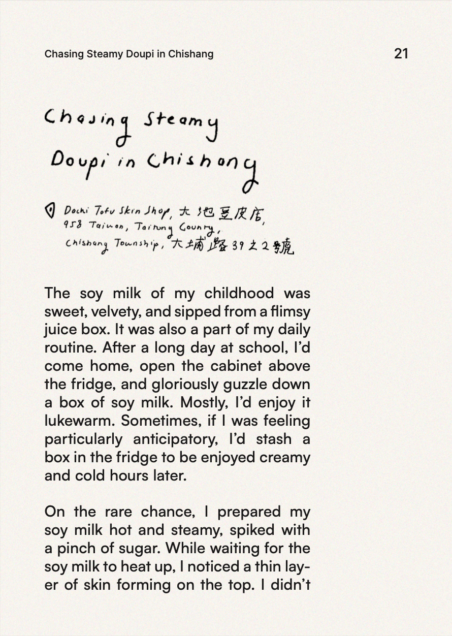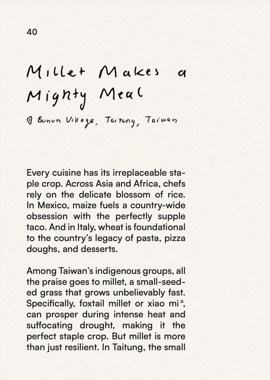 This booklet shares the stories of incredible individuals in Taitung, Taiwan, through the lens of ten iconic dishes. Read about Taiwan's singular sprawling eastern coast, and learn about the lives of farmers and educators, especially from Taiwan’s indigenous groups. Part narrative essays, part photo book, this booklet will be an eye-opening, beautiful read and undoubtedly delicious too.